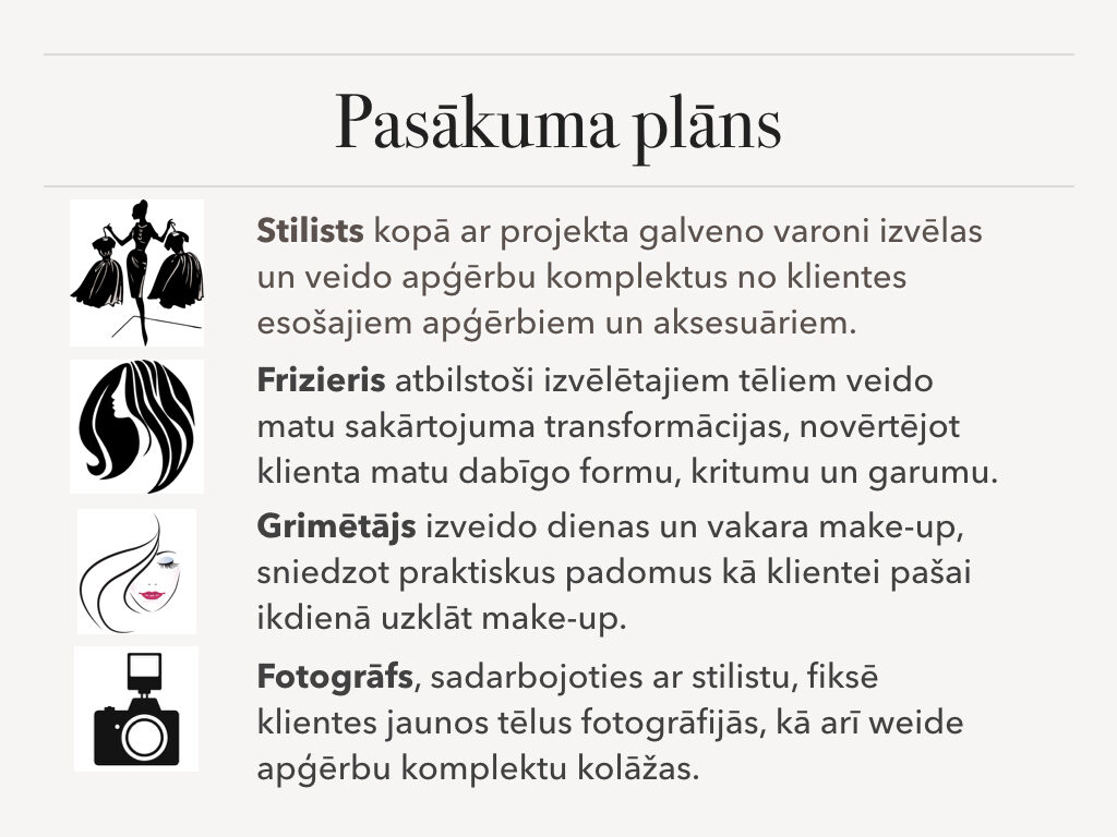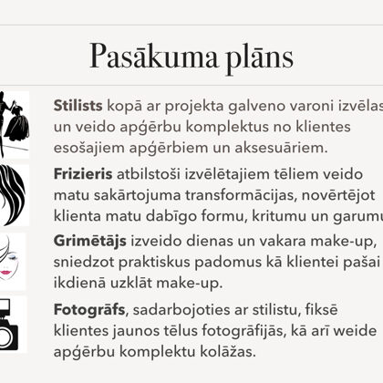 Sniegto profesionālo pakalpojumu klāstā ietilpst plašākie friziera, vizāžista un stilista pakalpojumi. Pakalpojumu aprakstu kopā ar cenām skatīt zemāk.
